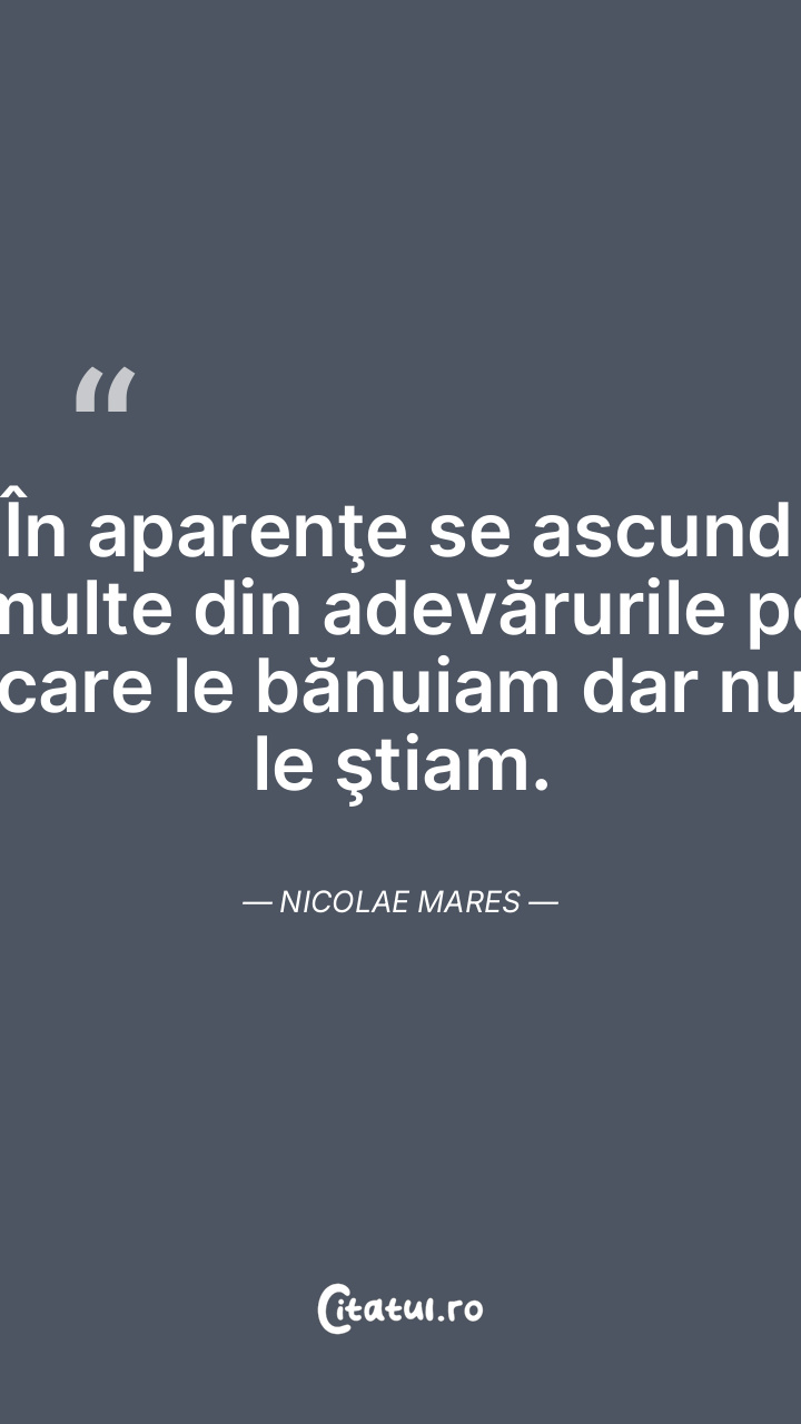 N-a ştiut că pentru a cunoaşte adevărul curat se va alege cu capu spart. Nicolae Mares