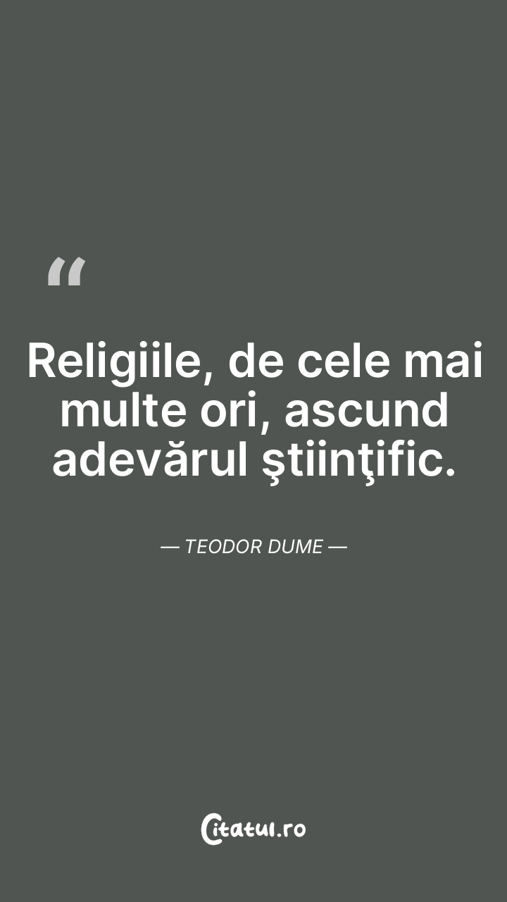 Nimeni nu poate trăi mai multe adevăruri deodată, fiecare se intersectează doar cu propriul său adevăr. Teodor Dume