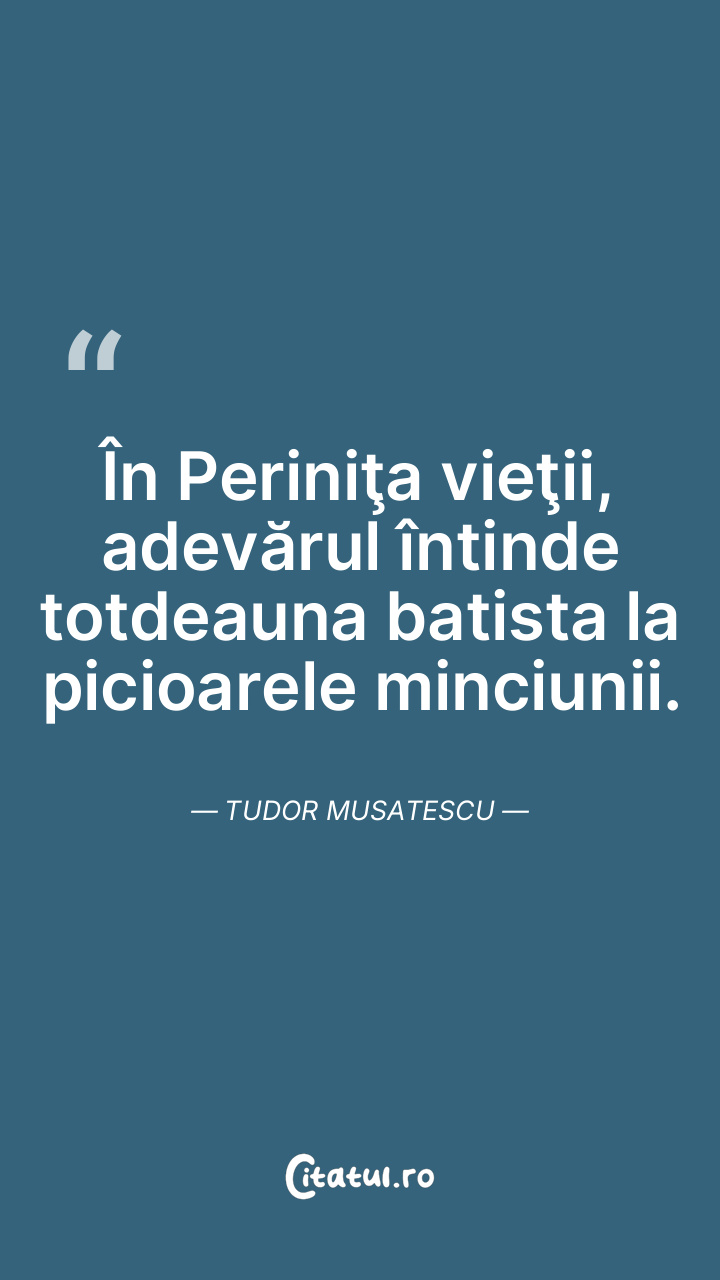 Adevărul își păstrează demnitatea doar atunci când este susținut cu tărie; altfel, se alătură minciunii. Tudor Musatescu