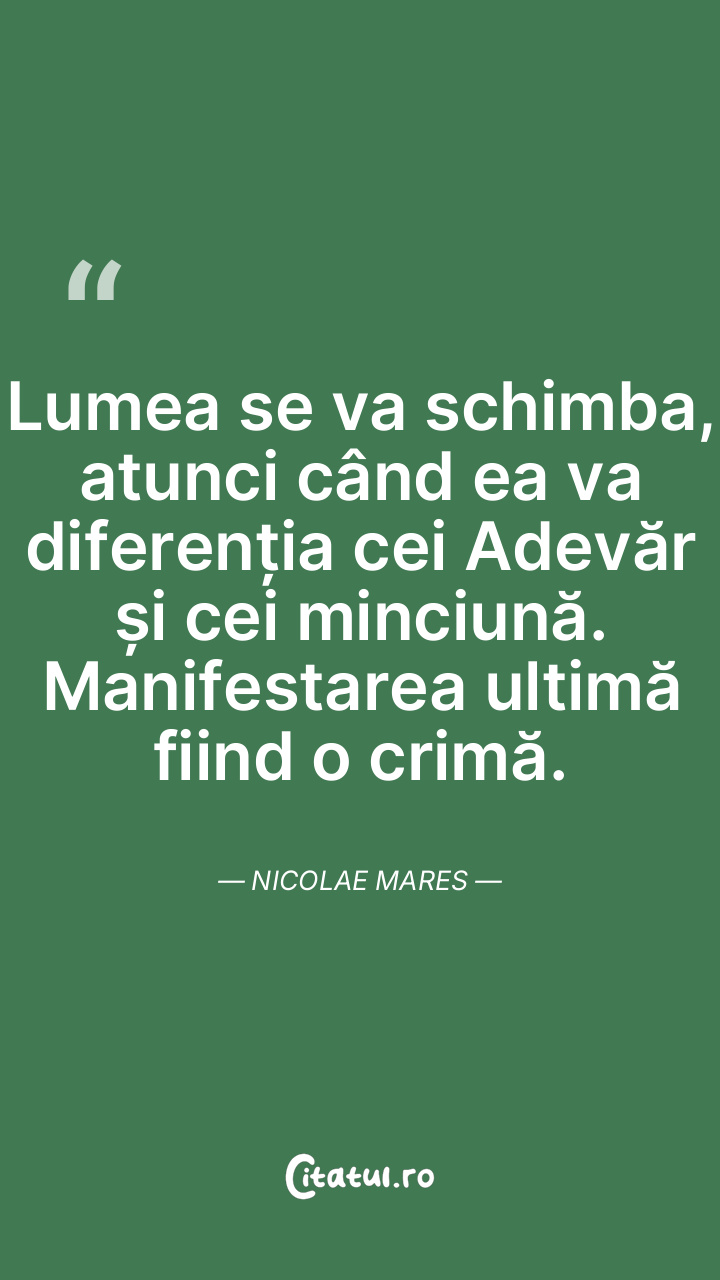 Dacă adevărul e privit în față, sigur minciuna iese la suprafață. Nicolae Mares