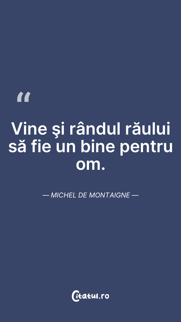Binele nu urmează răului, în mod obligatoriu. Michel de Montaigne