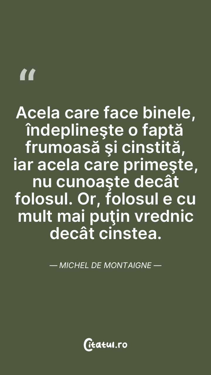 Zilnic şi în fiecare ceas spunem despre altul ceea ce am spune mai bine despre noi, dacă ne-am şti aduna judecata pe cât o împrăştiem. Michel de Montaigne