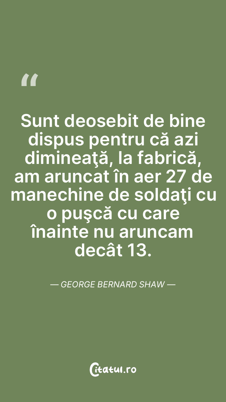 Nici un om ocupat cu un lucru foarte dificil şi pe care îl face foarte bine nu-şi poate pierde respectul faţă de sine. George Bernard Shaw