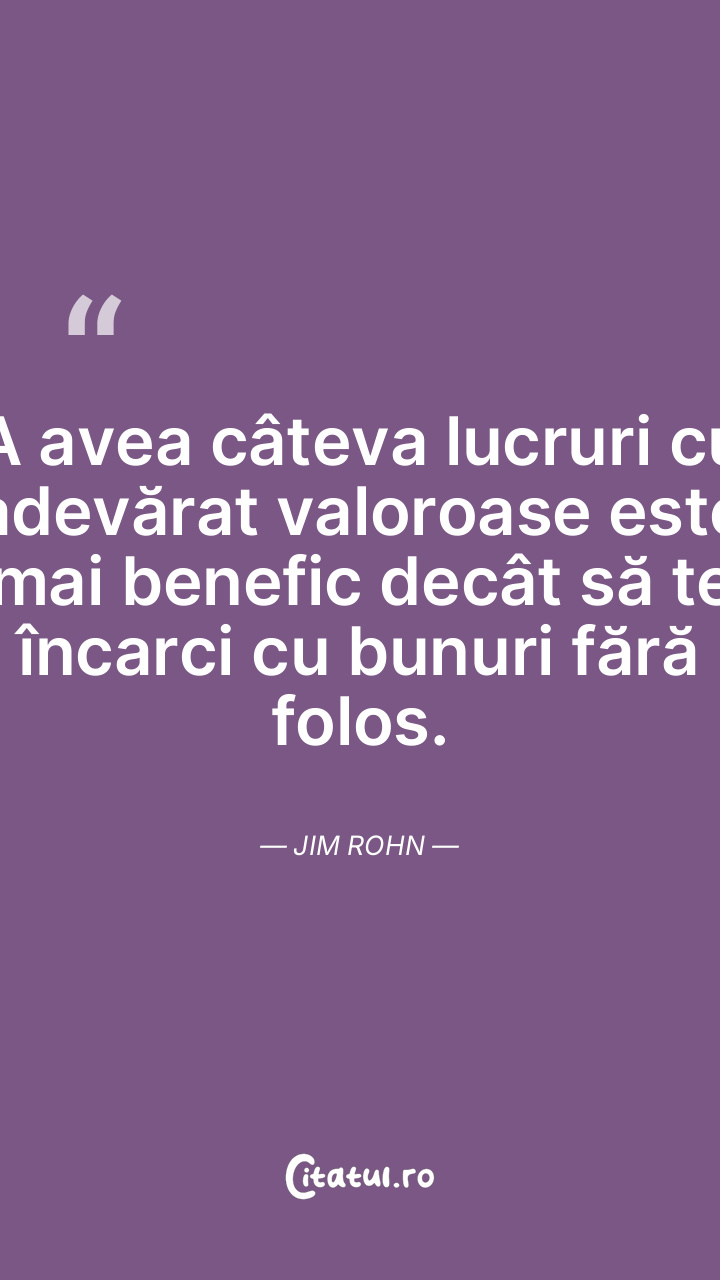 Adevărata împlinire nu constă în ceea ce îți dorești, ci în transformarea ta în persoana care poate realiza acele dorințe. Jim Rohn
