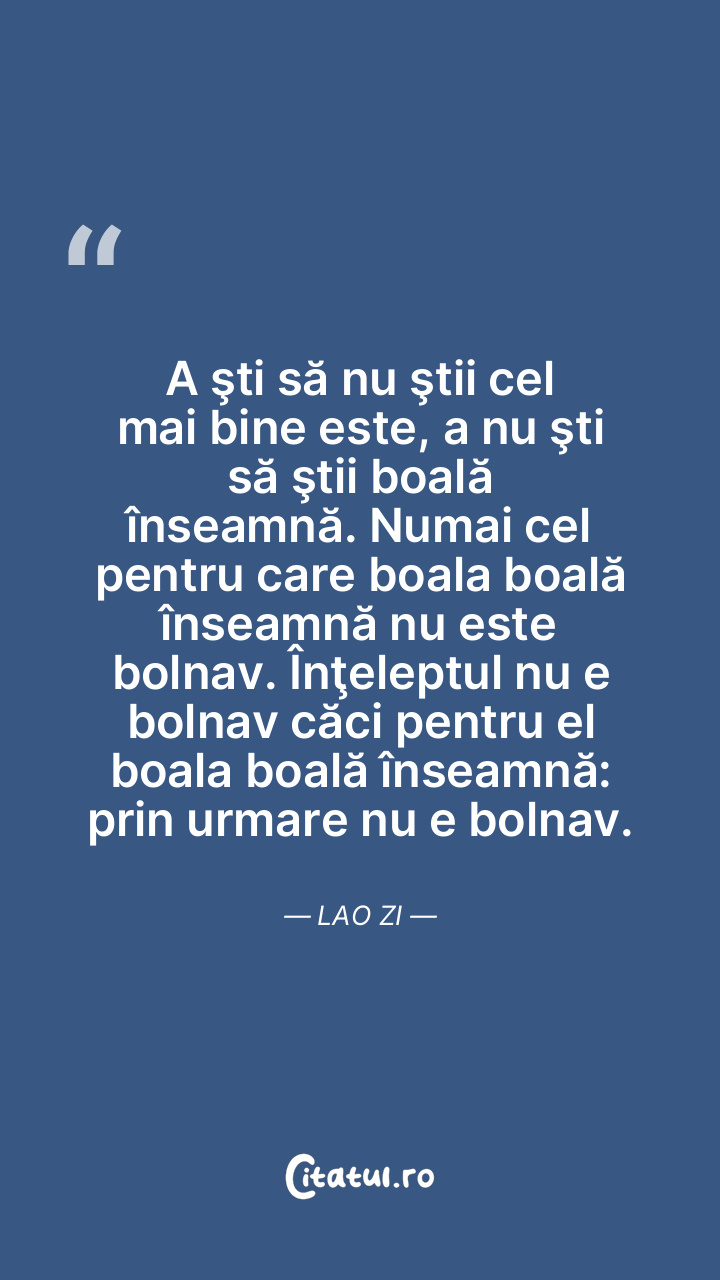 Nu trebuie să ieşi afară ca să vezi mai bine, nici să priveşti de la fereastră. Mai bine zăboveşte înlăuntrul fiinţei tale. Cu cât te îndepărtezi mai mult, cu atât vei cunoaşte mai puţin. Lao Zi