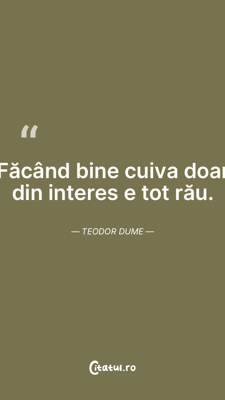 Binele şi răul sunt ca şi doi fraţi gemeni, dar numai cel care posedă toate elementele cunoaşterii poate să preţuiască binele. Teodor Dume