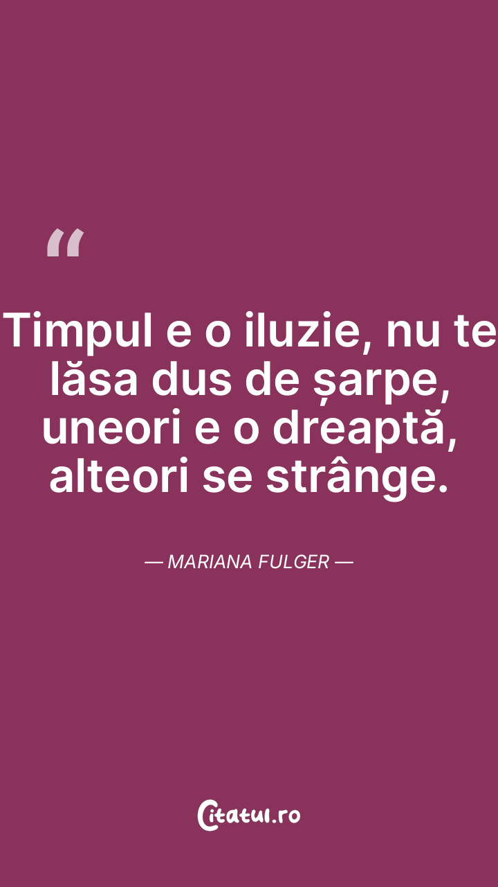 Nu te plânge de timpul tău; dacă-l găsești rău, întreabă-te ce ai făcut ca să-l faci mai bun? Thomas Carlyle