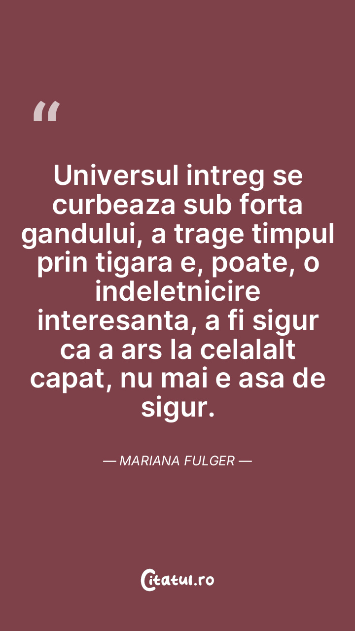 Cand n-am sa mai fiu, cuvintele acestea vor sti un timp sa nasca sori la capete de zi apoi, aripi despicand neantul, vor redeveni punct. Mariana Fulger