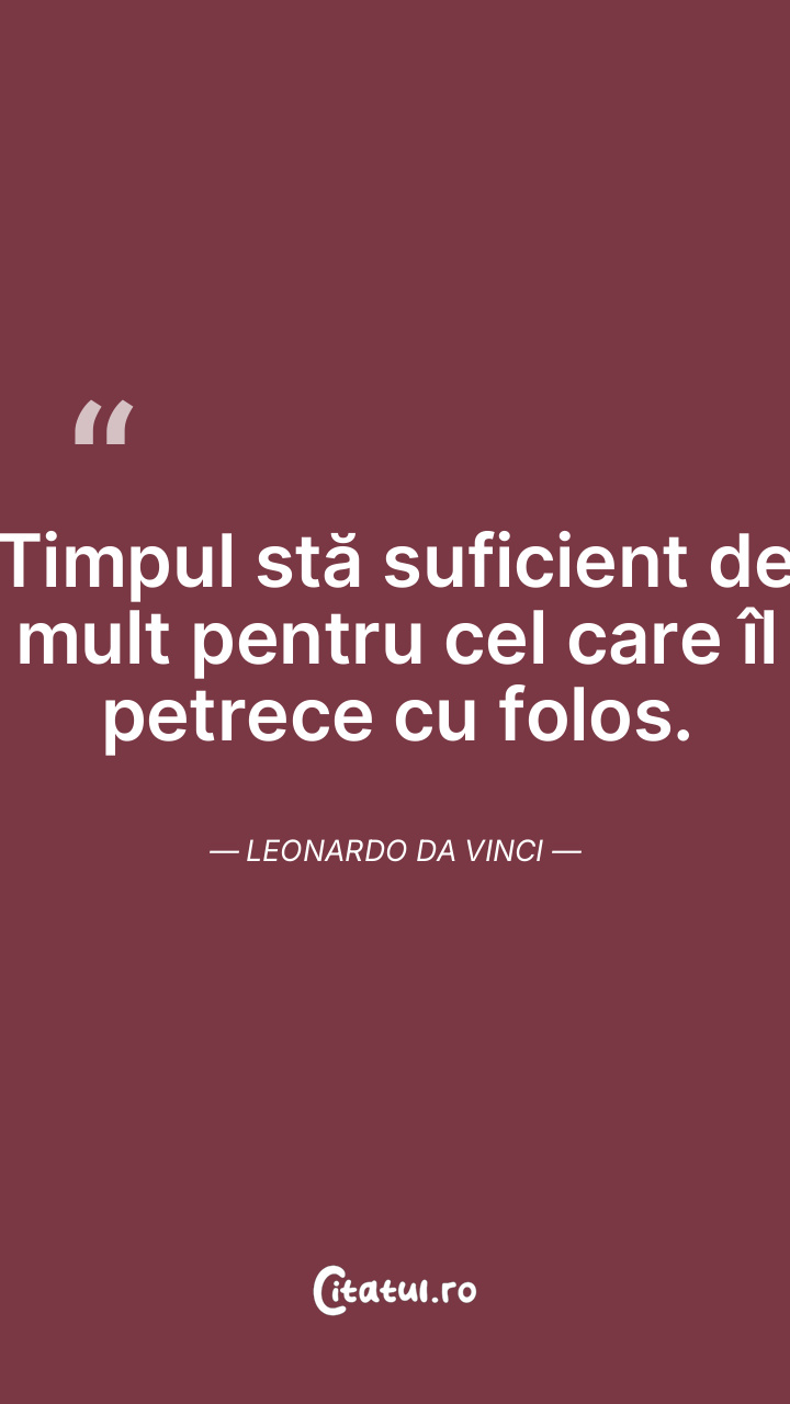 Timpul este suficient pentru cei care chiar îl folosesc. Leonardo da Vinci
