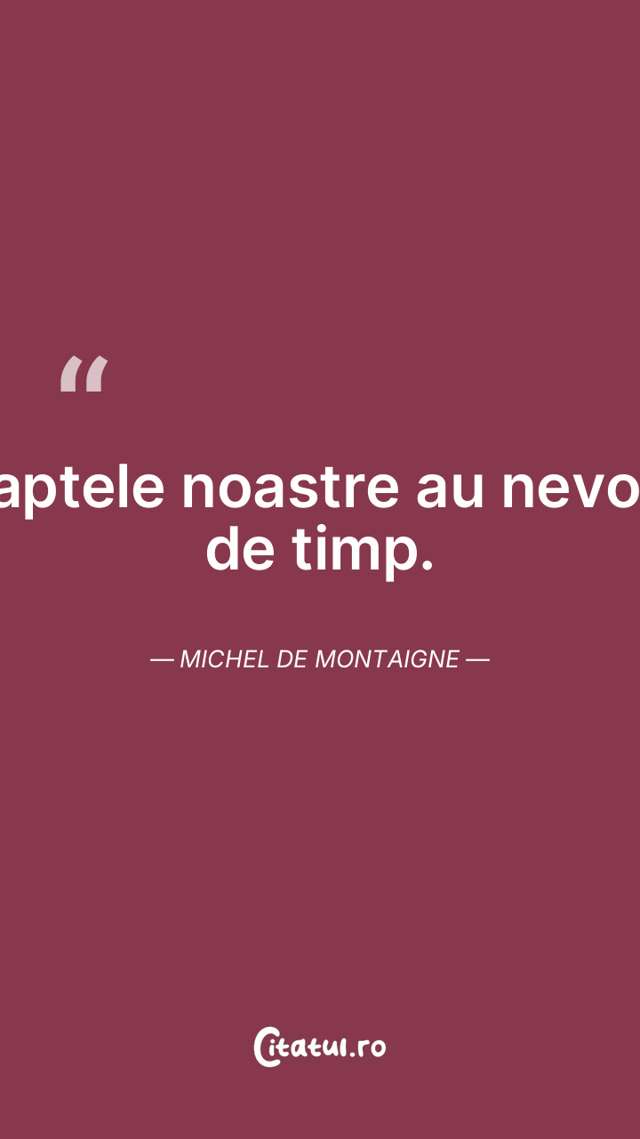 Să ne cruţăm timpul! Michel de Montaigne ... Categorie: citate viata Dificultate: Ușor de citit și înțeles Votează: ★ ★ ★ ★ ★ (0/5 din 0) Distribuiți acest citat? Alegeți platforma preferată: Salvează citatul in telefon/pc Să ne cruţăm timpul! Michel de Montaigne Copiază Favorite Eroare