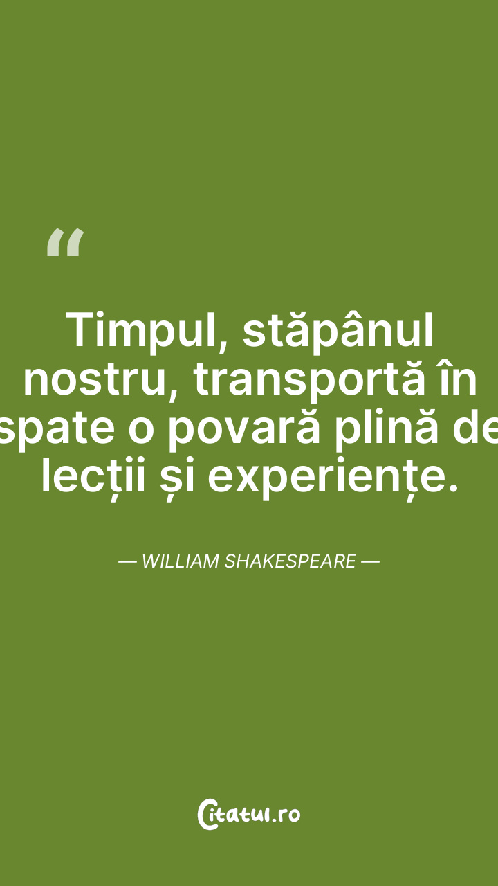 Nu lăsa să treacă timpul, amânările au finaluri periculoase. William Shakespeare