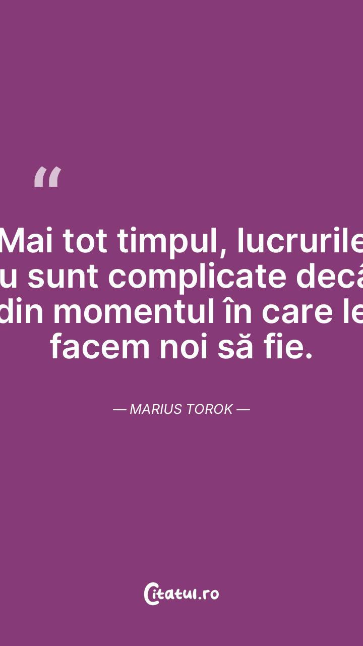 Timpul este prea scurt pentru ca discuţiile să fie fără conţinut, deplasările fără ţintă şi activităţile fără rezultat. Marius Torok