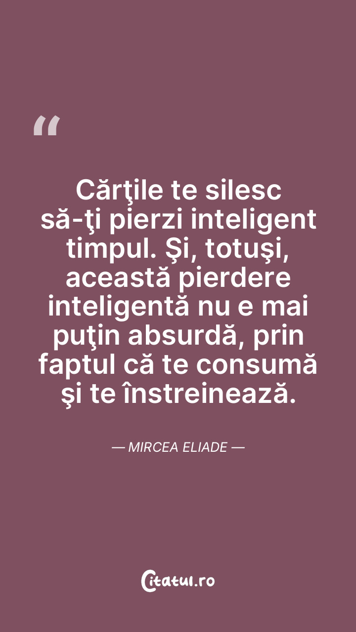 Cărţile ne obligă să ne petrecem timpul într-o manieră inteligentă. Mircea Eliade
