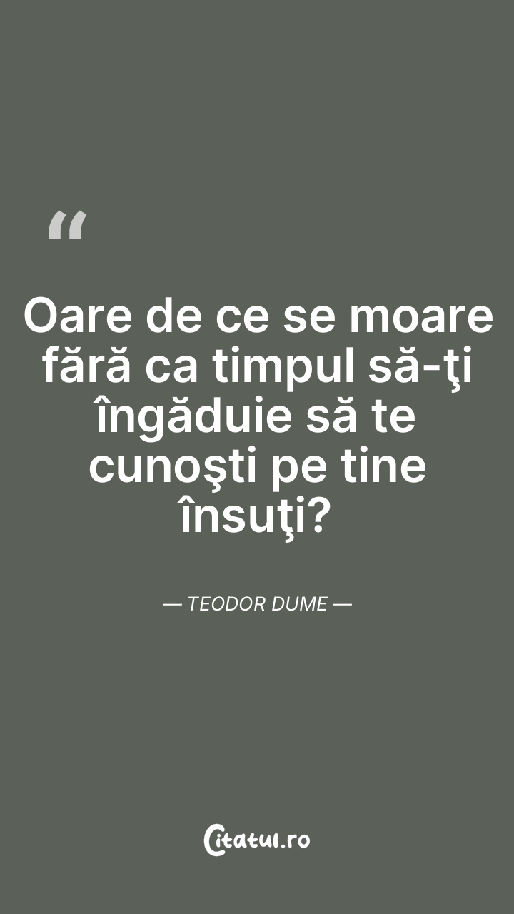 Timpul tău este distanţa dintre viaţă şi moarte. Teodor Dume