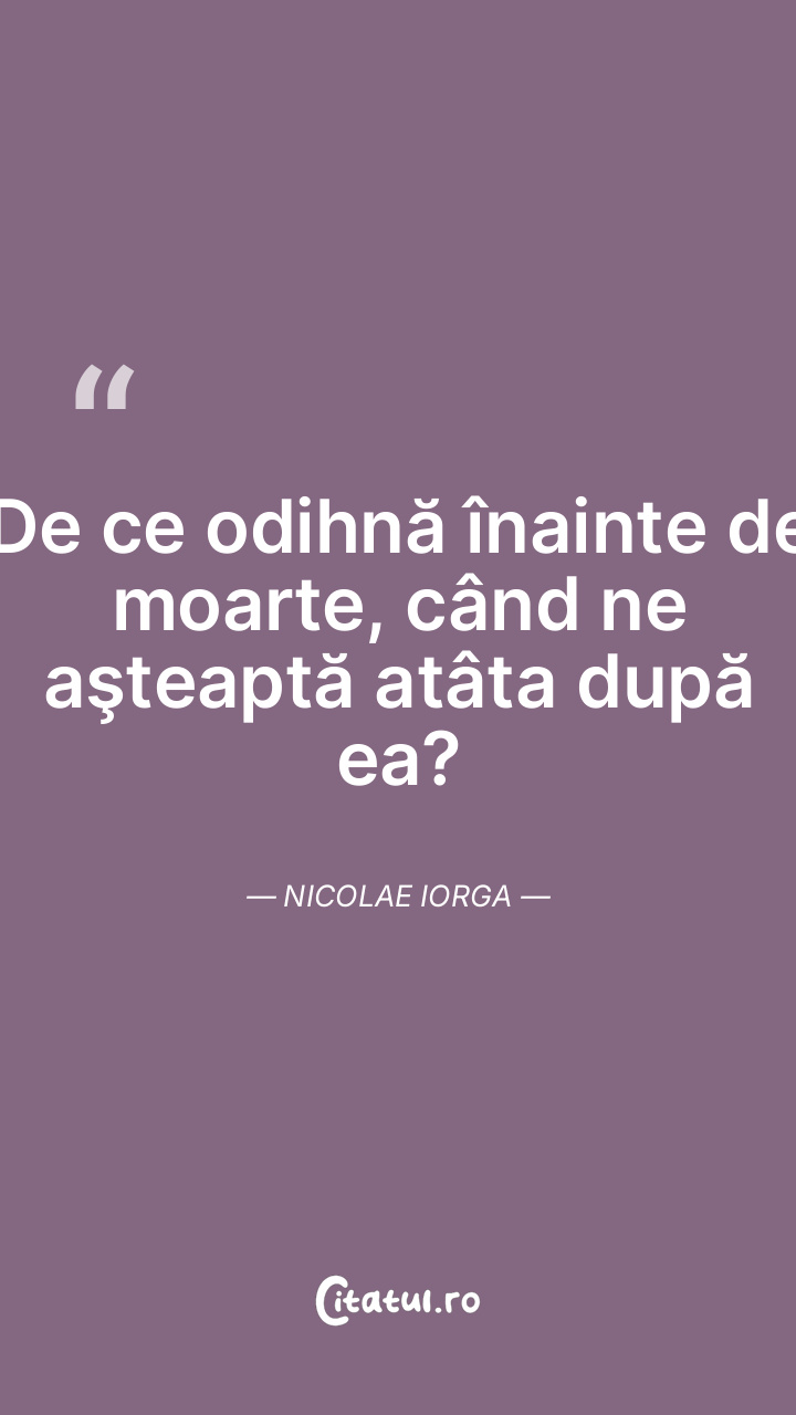 Moartea e o apă neagră care nu se varsă nicăieri. Nicolae Iorga