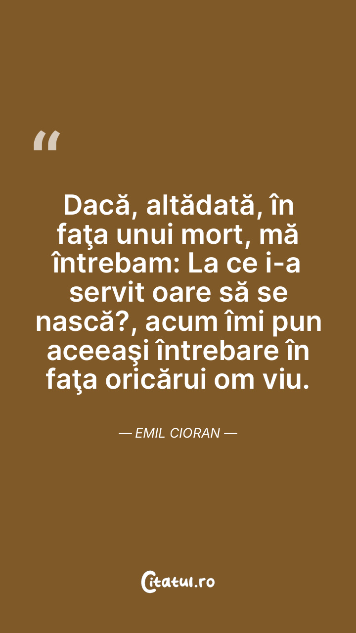Doar pentru cei ce şi-au dormit viaţa moartea poate însemna un somn. Ceilalţi, atinşi de veghe, vor supravieţui treji cenuşii lor sau scheletului ironic! Emil Cioran