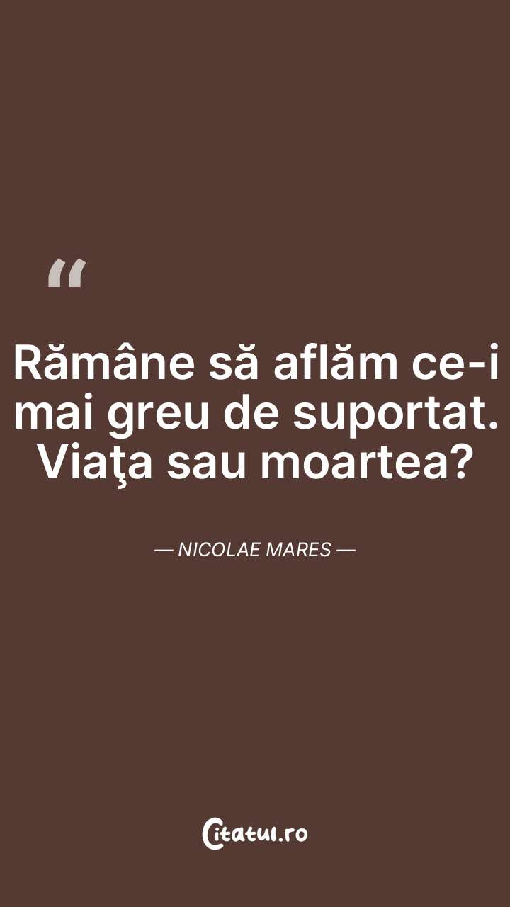 Dacă nu îţi faci un nume, mori cum ai trăit: anonim. Nicolae Mares