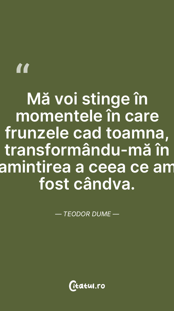 Moartea înghite totul, până şi imaginea în care ai trăit. Teodor Dume