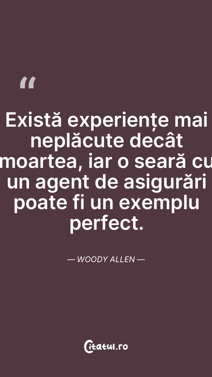 Cred în sex şi moarte: sunt amândouă experienţe de care numai o dată ai parte în viaţă. Woody Allen