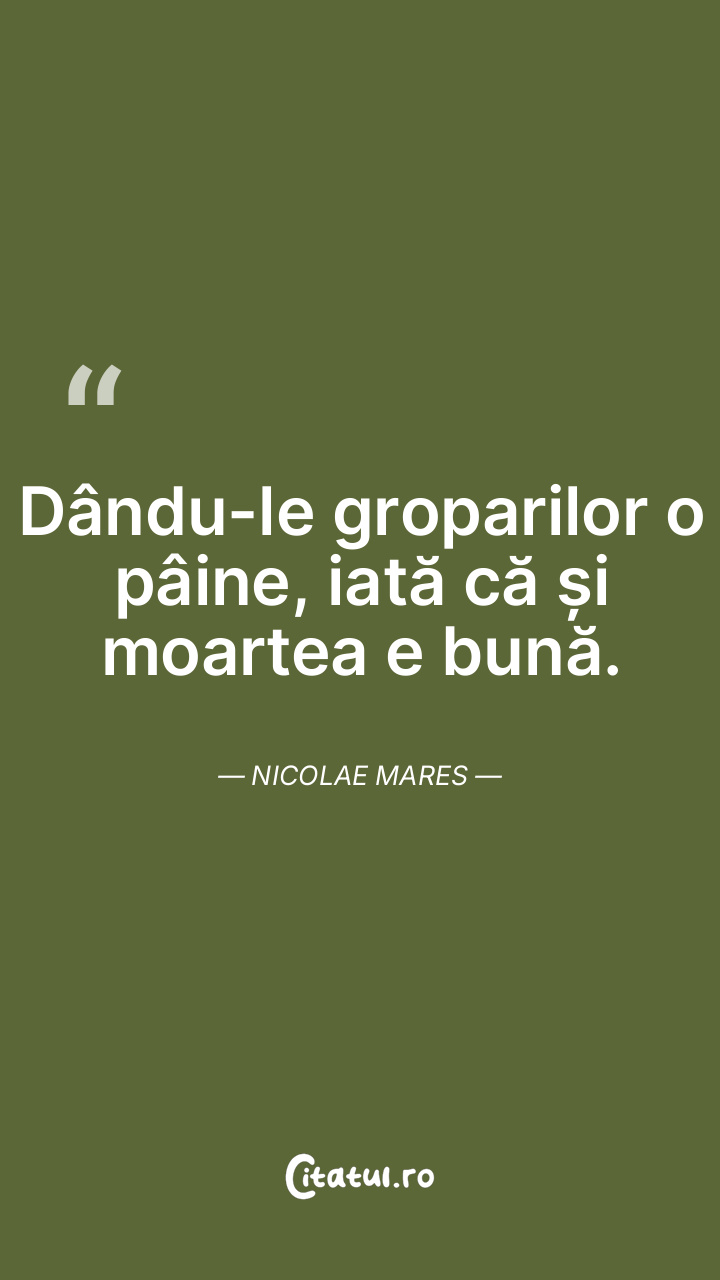 cel care moartea în gând o poartă, muri-va de mai multe ori, nu o dată. Nicolae Mares