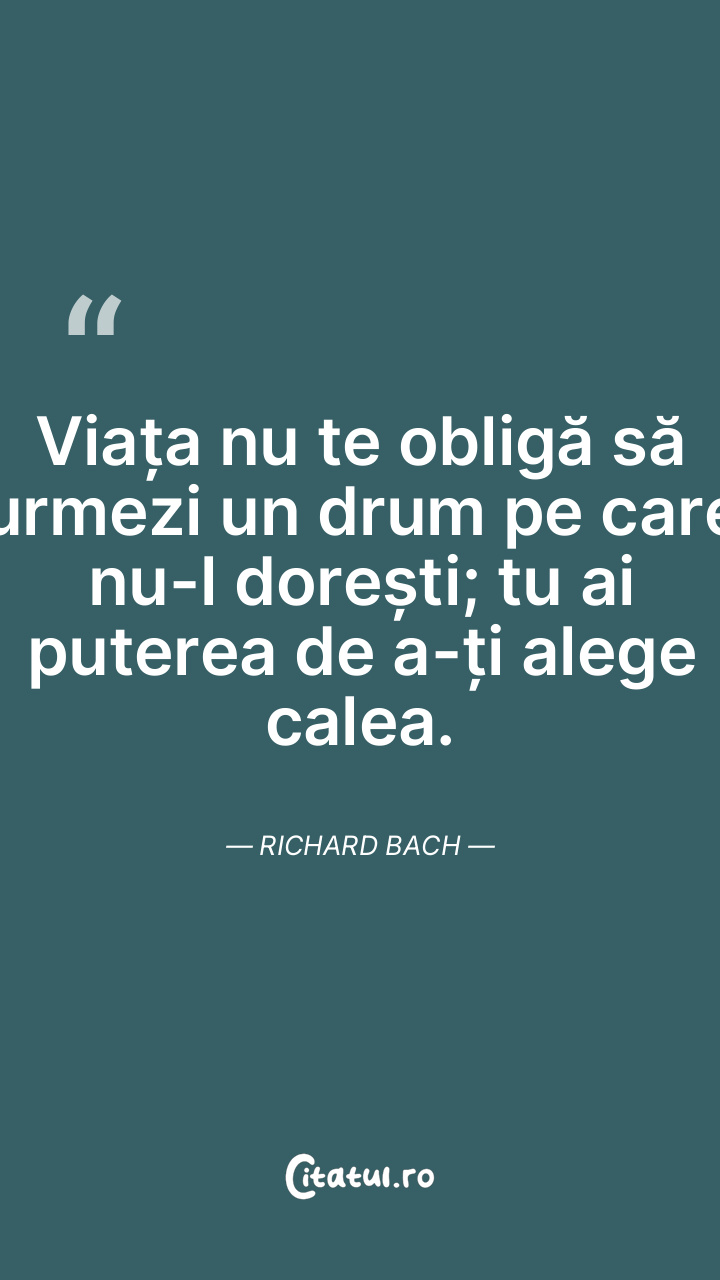 Orice situație îți oferă posibilitatea de a accepta sau de a te retrage, alegerea îți aparține. Richard Bach