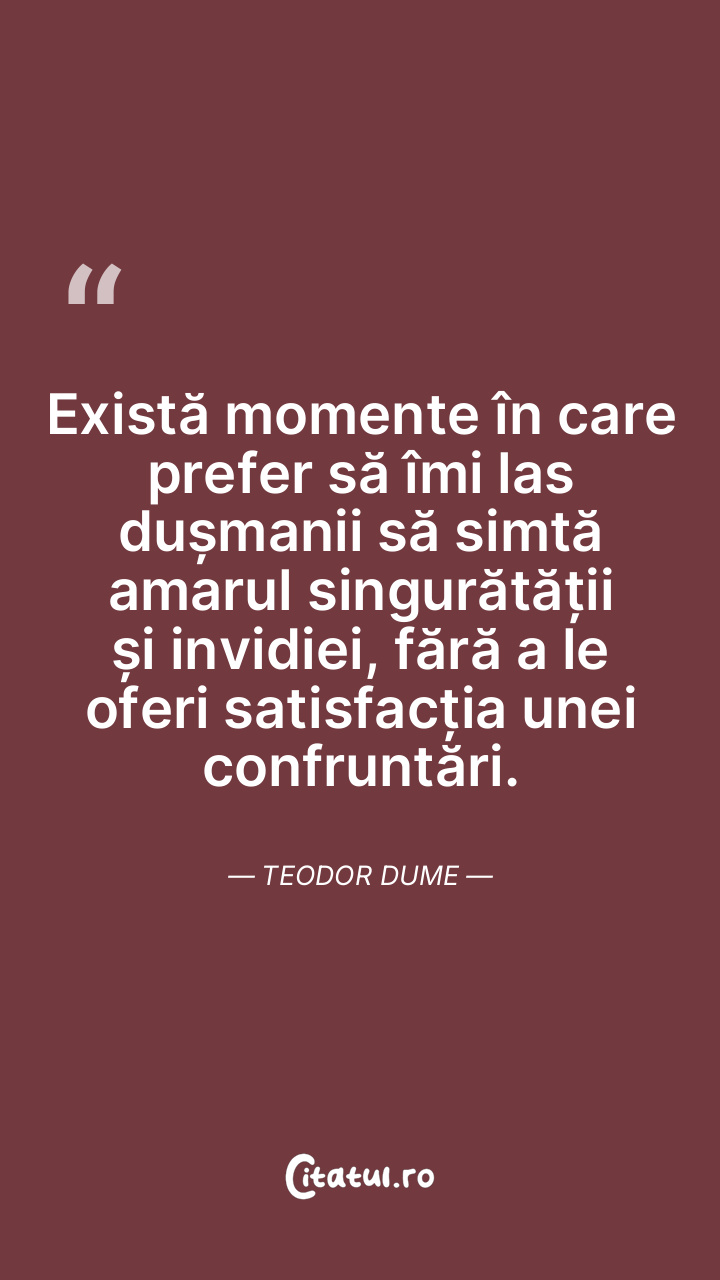 Menține-ți întotdeauna demnitatea și nu te opri să aștepți în fața unei oportunități ce nu ți se oferă. Teodor Dume