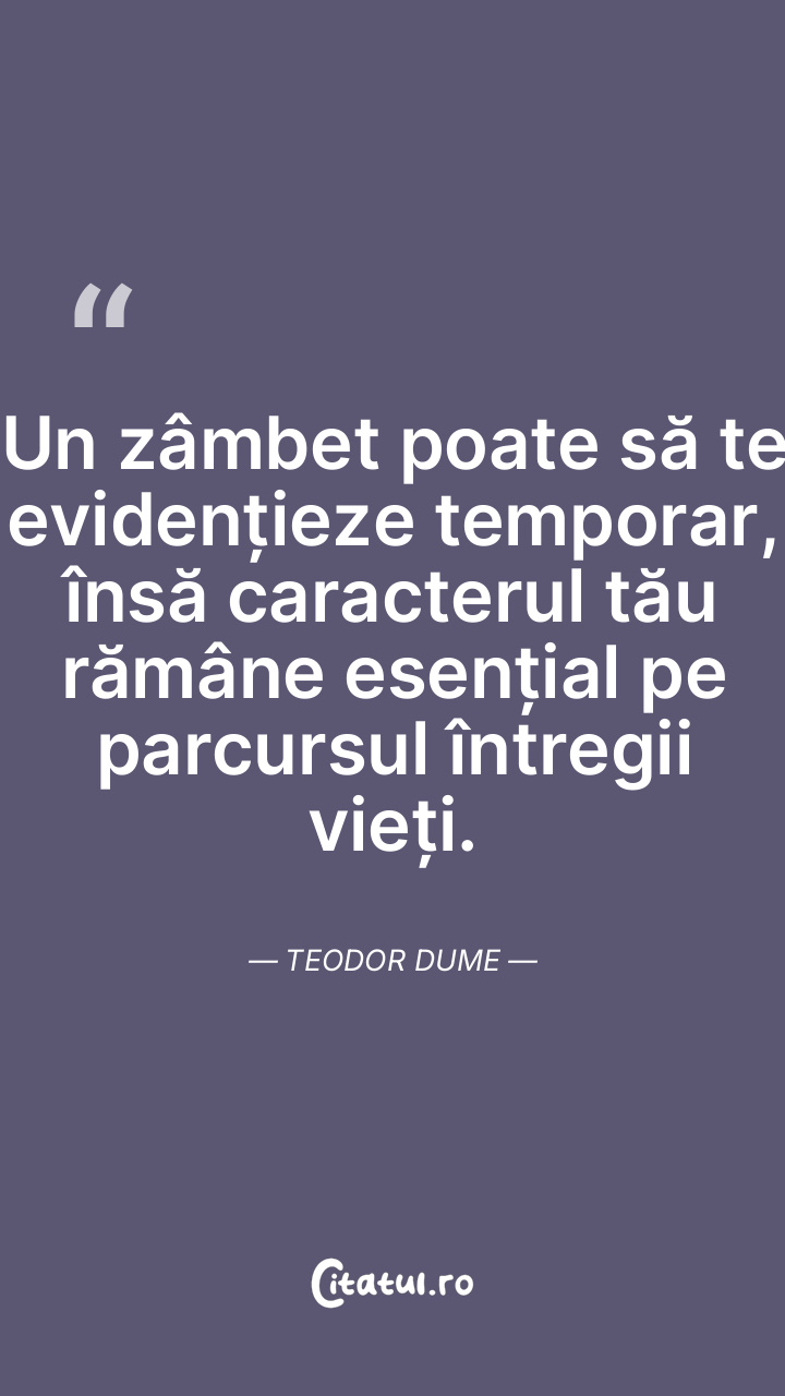 Fiecare zi ne oferă ocazia să ne îmbunătățim imaginea, reamintindu-ne astfel de propria noastră existență. Teodor Dume