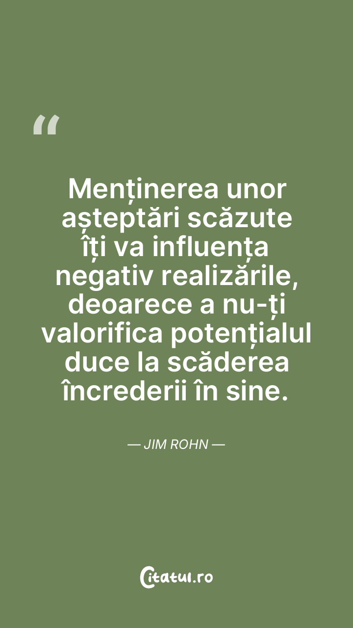 Responsabilitatea pentru viața ta îți aparține, iar dacă te bazezi pe alții, vei rămâne mereu dezamăgit și neîmplinit. Jim Rohn