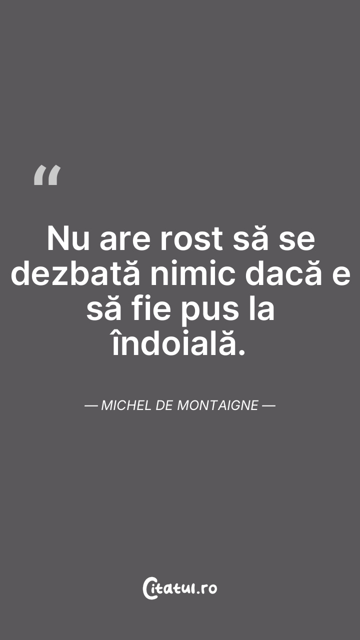 Nimic din sinea mea nu-mi satisface judecata. Michel de Montaigne