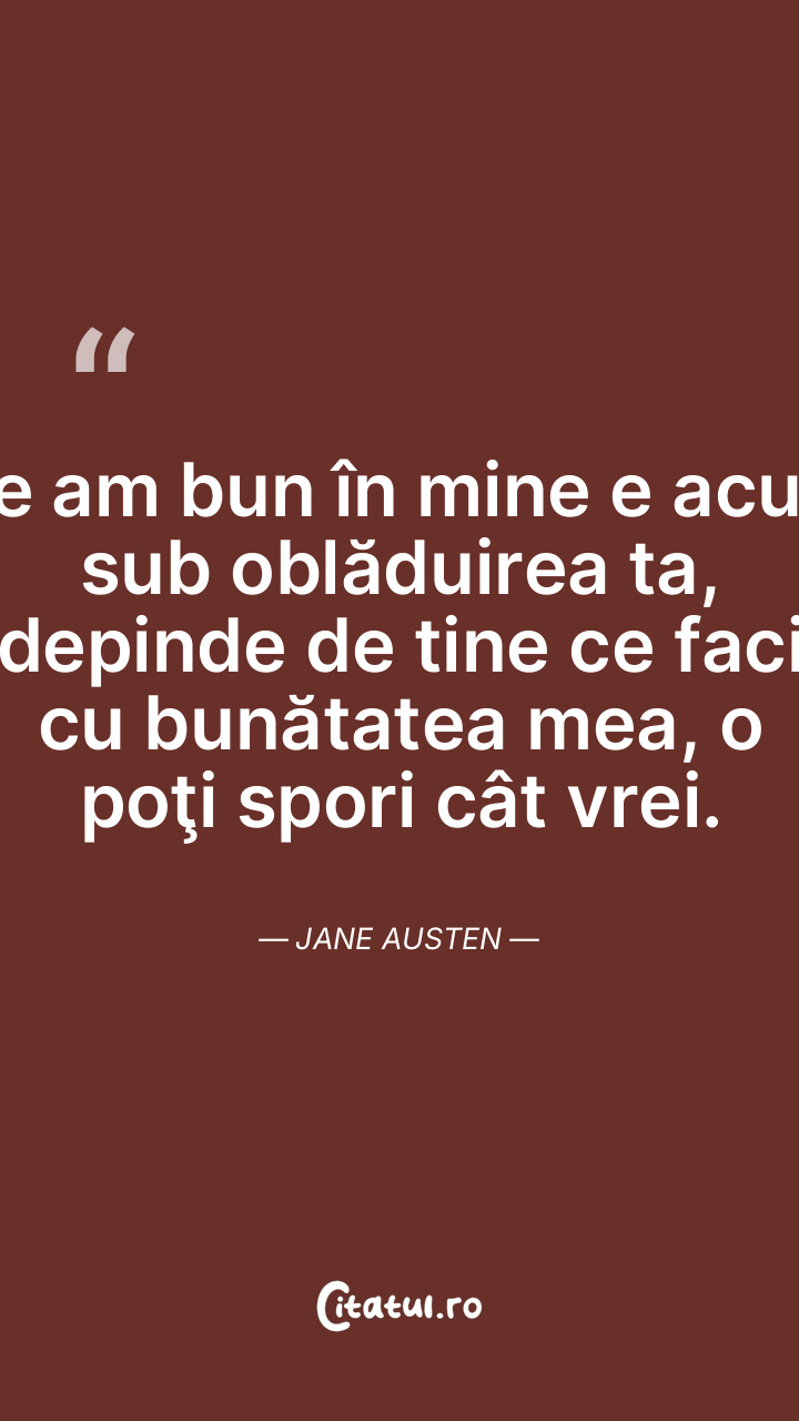 Voi renunţa atunci la orice aşteptare, la orice dorinţă de a fi statornic. Dacă se va mulţumi doar să mă regrete, când ar putea obţine afecţiunea mea, voi înceta să mai regret eu însumi în vreun fel. Jane Austen