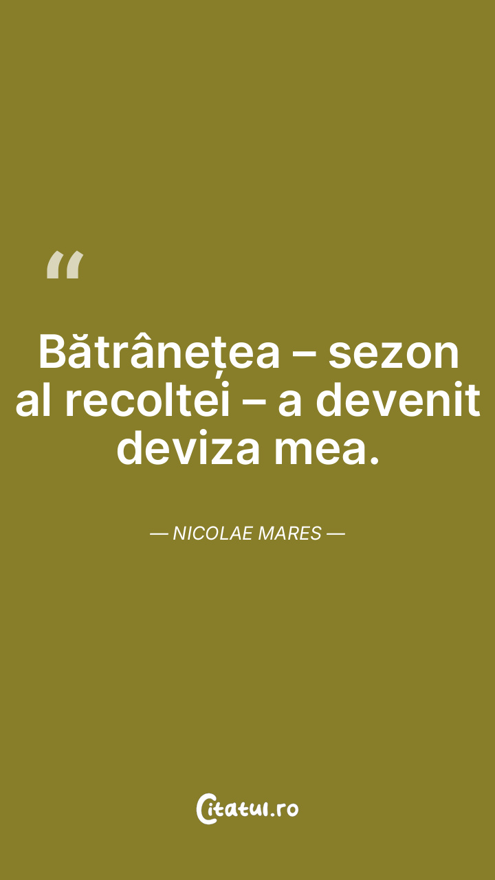 Aș oferi cu bucurie toată experiența acumulată în anii mei de viață altcuiva, care ar avea nevoie de ea. Nicolae Mares