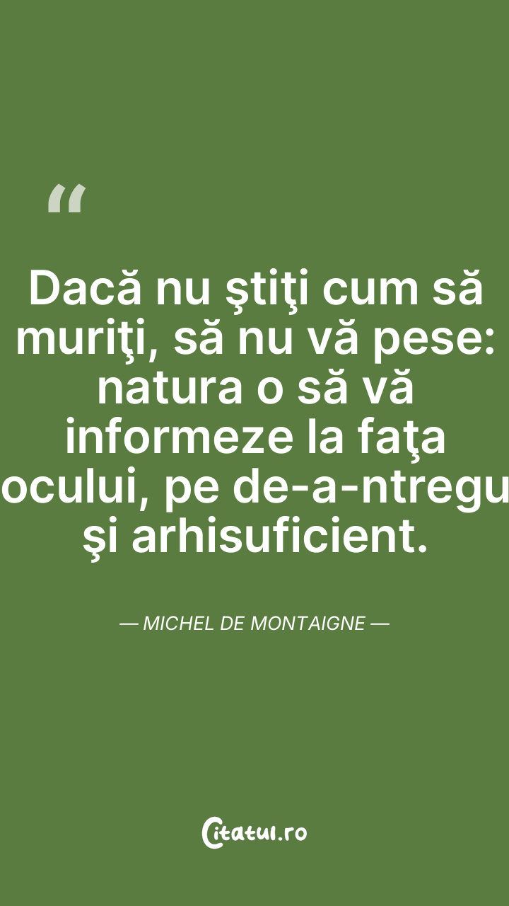 Atâta grijă am faţă de libertatea judecăţii mele, încât anevoie o pot părăsi, oricâtă patimă m-ar îmbia. Michel de Montaigne