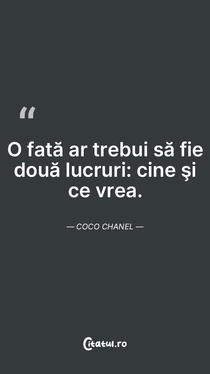 Natura îţi dă faţa pe care o ai la 20 de ani; depinde numai de tine, faţa pe care o ai la 50 de ani. Coco Chanel