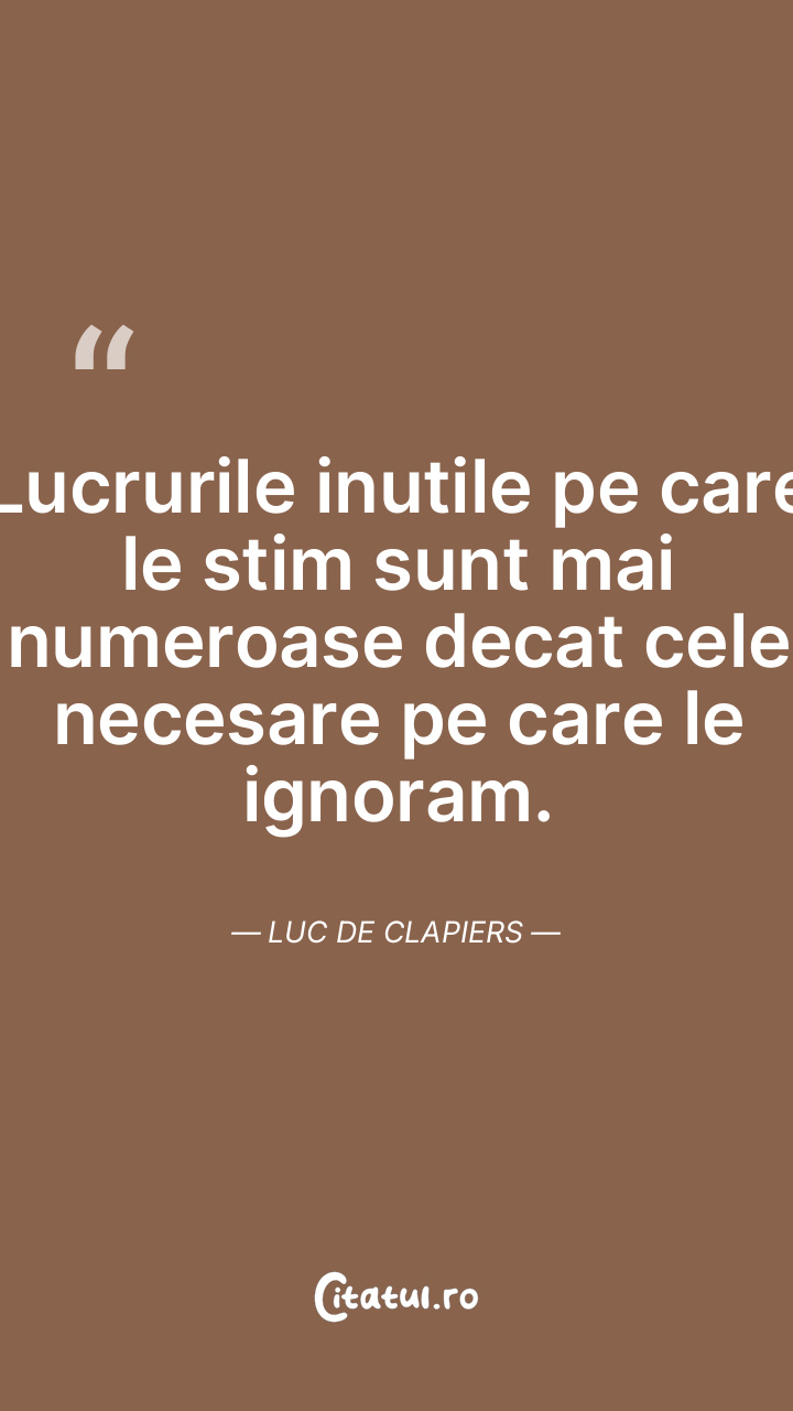 Dupa cum e firesc sa credem o multime de lucruri fara demonstrare, tot astfel nu este mai putin firesc sa ne indoim de altele cu toate dovezile lor. Luc de Clapiers