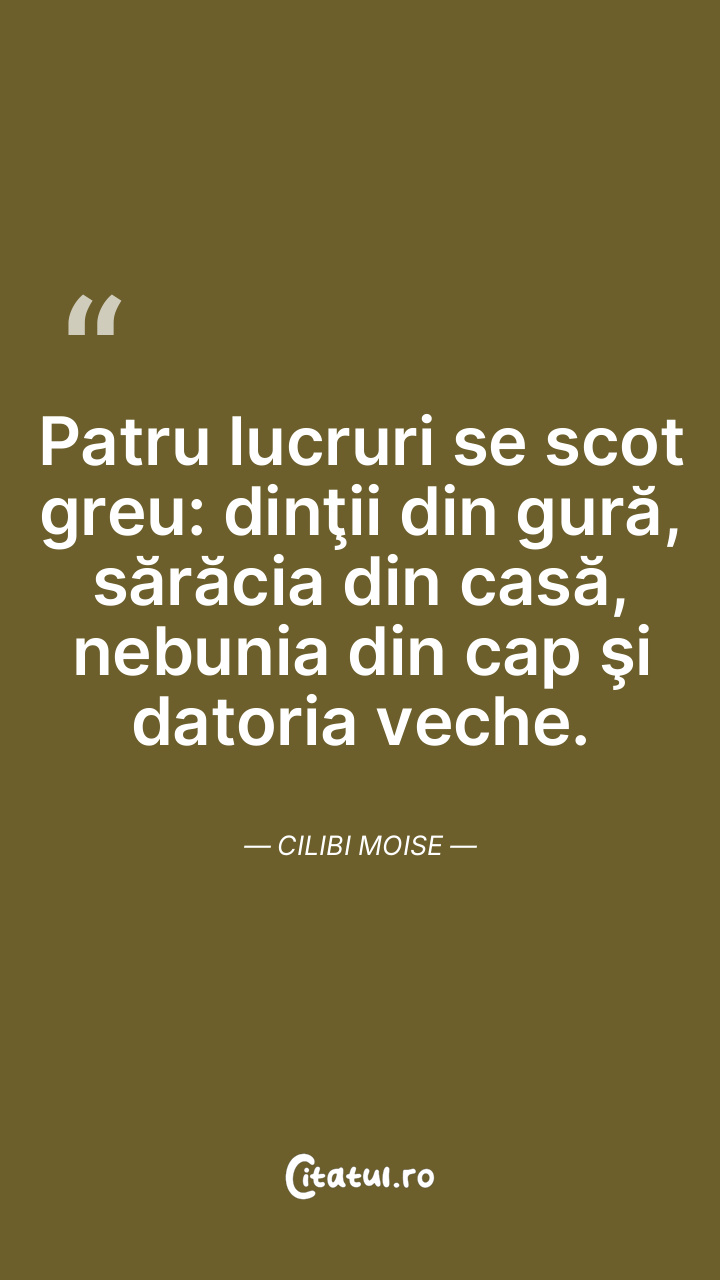 Două lucruri sunt grele a se face într-o zi: din sărac bogat şi din necinstit cinstit. Cilibi Moise
