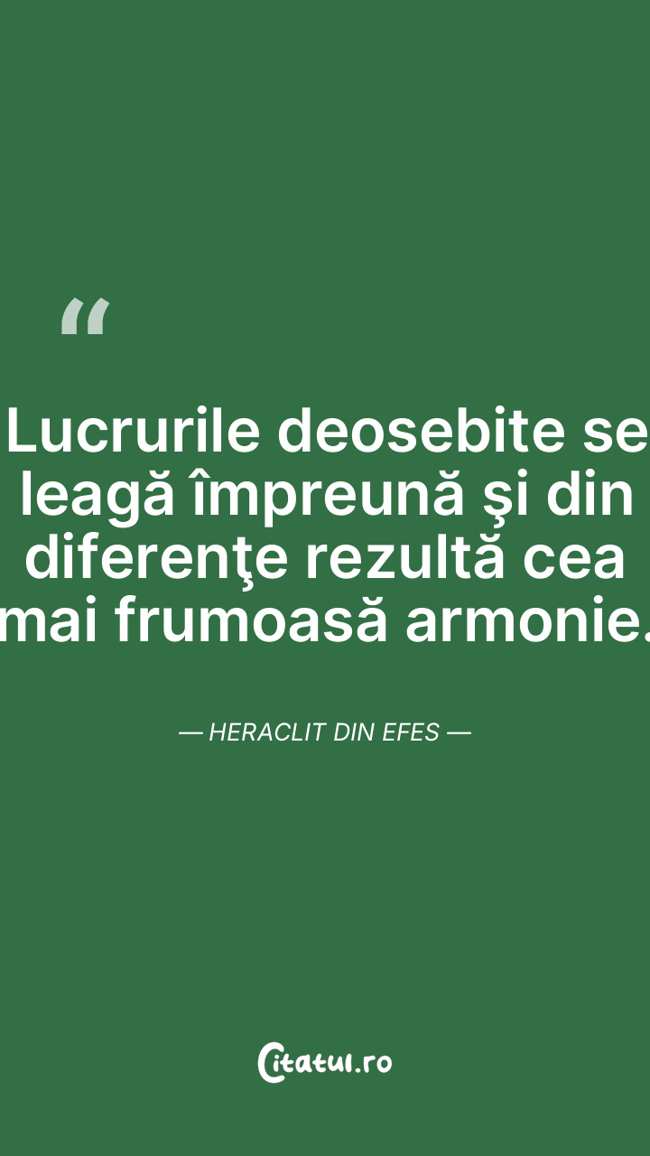 Natura e nesăţioasă de contrarii; din acestea şi nu din lucruri asemănătoare realizează ea armonia. Se pare că arta, care imită natura, procedează la fel. Heraclit din Efes