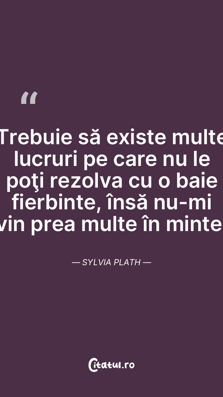 Probabil că sunt destule lucruri pe care o baie fierbinte nu le rezolvă, dar eu nu ştiu prea multe. Sylvia Plath