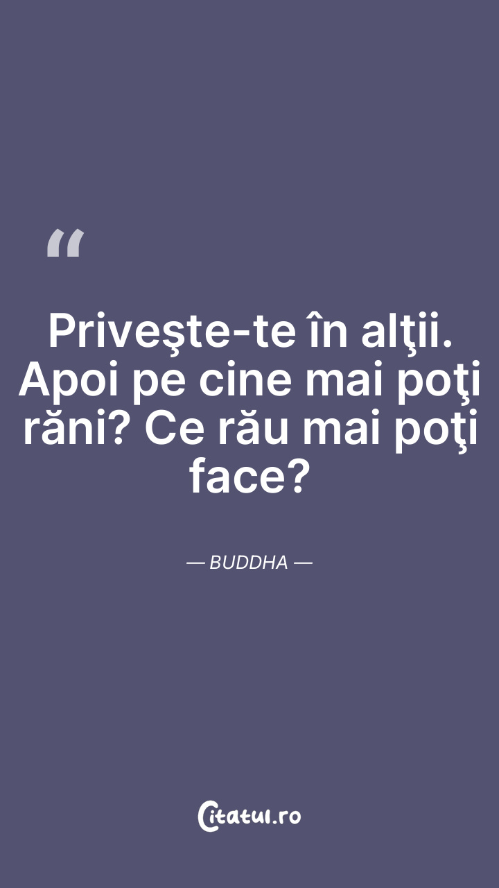 Dacă te vezi pe tine în ceilalţi, pe cine ai mai putea răni? Ce rău ai mai putea face? Buddha