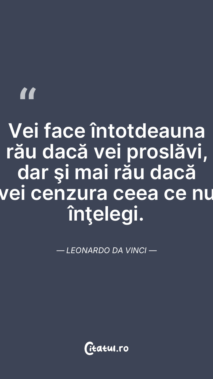 Răul cel mai mare ce i se poate întâmpla unui artist este ca lucrarea lui să arate bună în ochii săi proprii. Leonardo da Vinci