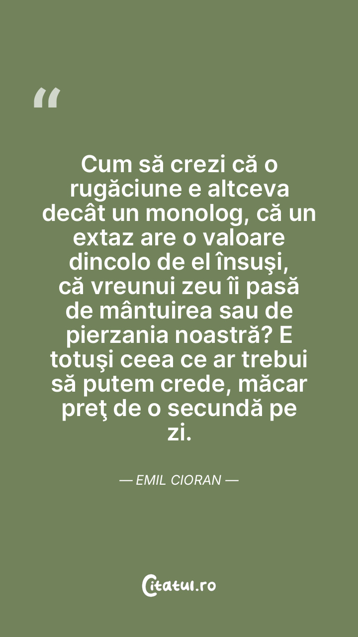 Nu te-ar interesa fiinţele dacă n-ai spera să întâlneşti cândva pe unul mai încolţit decât tine. Emil Cioran