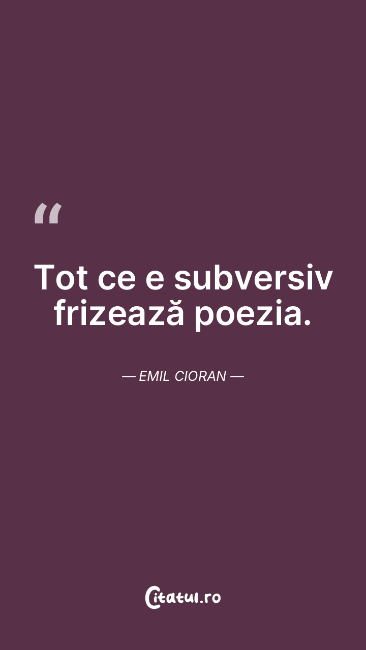 Poezia demnă de acest nume începe prin experienţa fatalităţii. Numai poeţii slabi sunt liberi. Emil Cioran