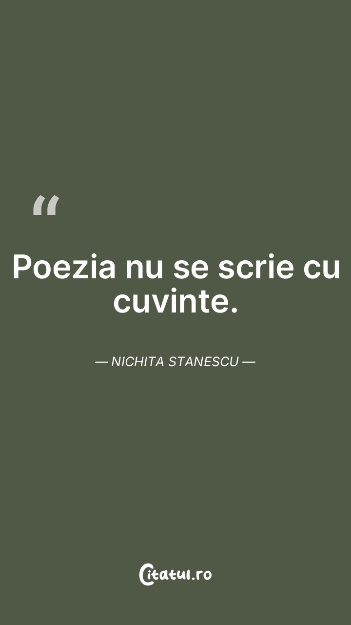 Am să vă spun un lucru, cu riscul de a mă repeta. Eu nu prea cred că există poeţi, cred că există poezie. Nichita Stanescu