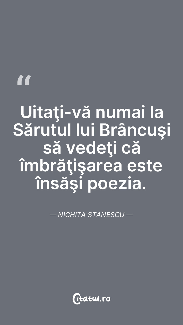Poezia este ochiul care plânge. Ea este umărul care plânge, ochiul umărului care plânge. Ea este mâna care plânge, ochiul mâinii care plânge. Ea este talpa care plânge, ochiul călcâiului care plânge. Nichita Stanescu