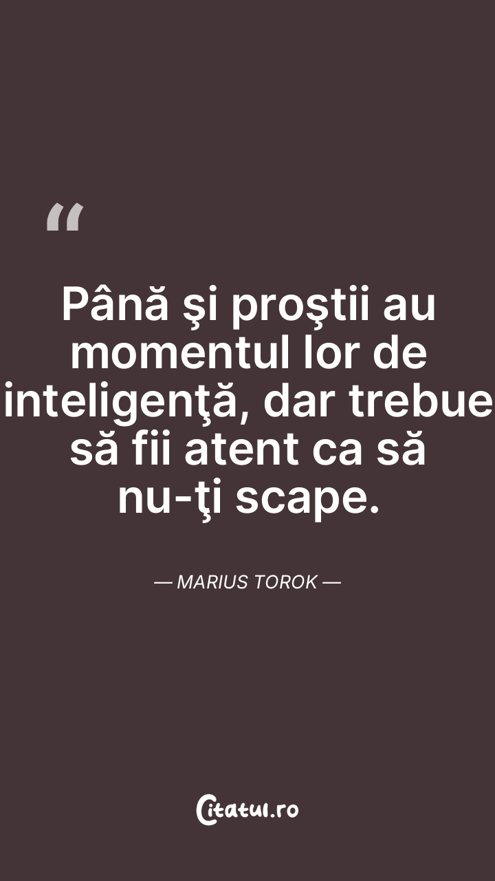 Deşi inteligenţa este un lucru discutabil, prostia este un lucru sigur, atunci când vine vorba pe ce te poţi baza. Marius Torok