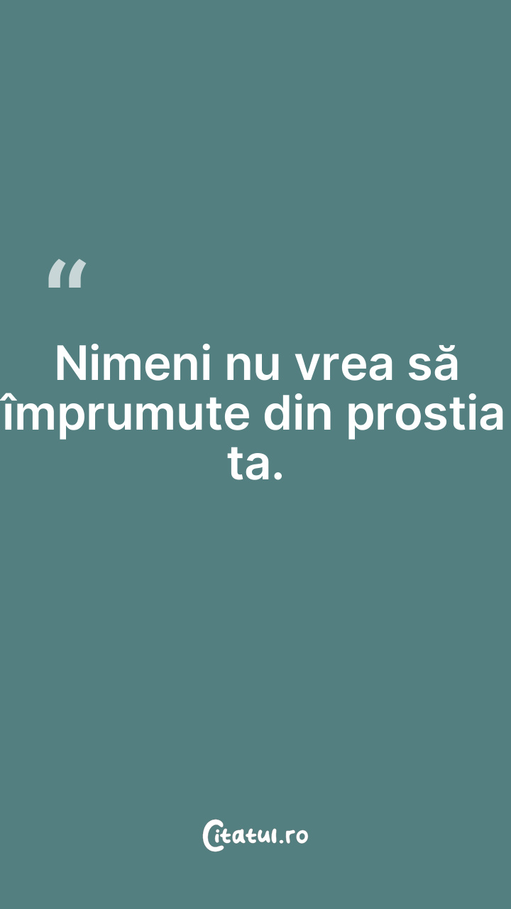 Prostia şi invidia sunt fraţi siamezi. ... Categorie: citate viata Dificultate: Foarte ușor de citit! Votează: ★ ★ ★ ★ ★ (0/5 din 0) Distribuiți acest citat? Alegeți platforma preferată: Salvează citatul in telefon/pc Prostia şi invidia sunt fraţi siamezi. Copiază Favorite Eroare