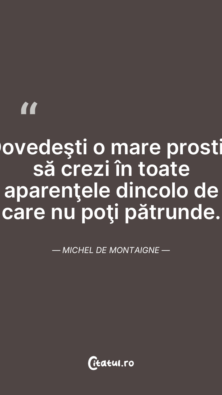 Să spui despre tine mai puţin decât se cuvine, înseamnă prostie şi nu moderaţie. Michel de Montaigne