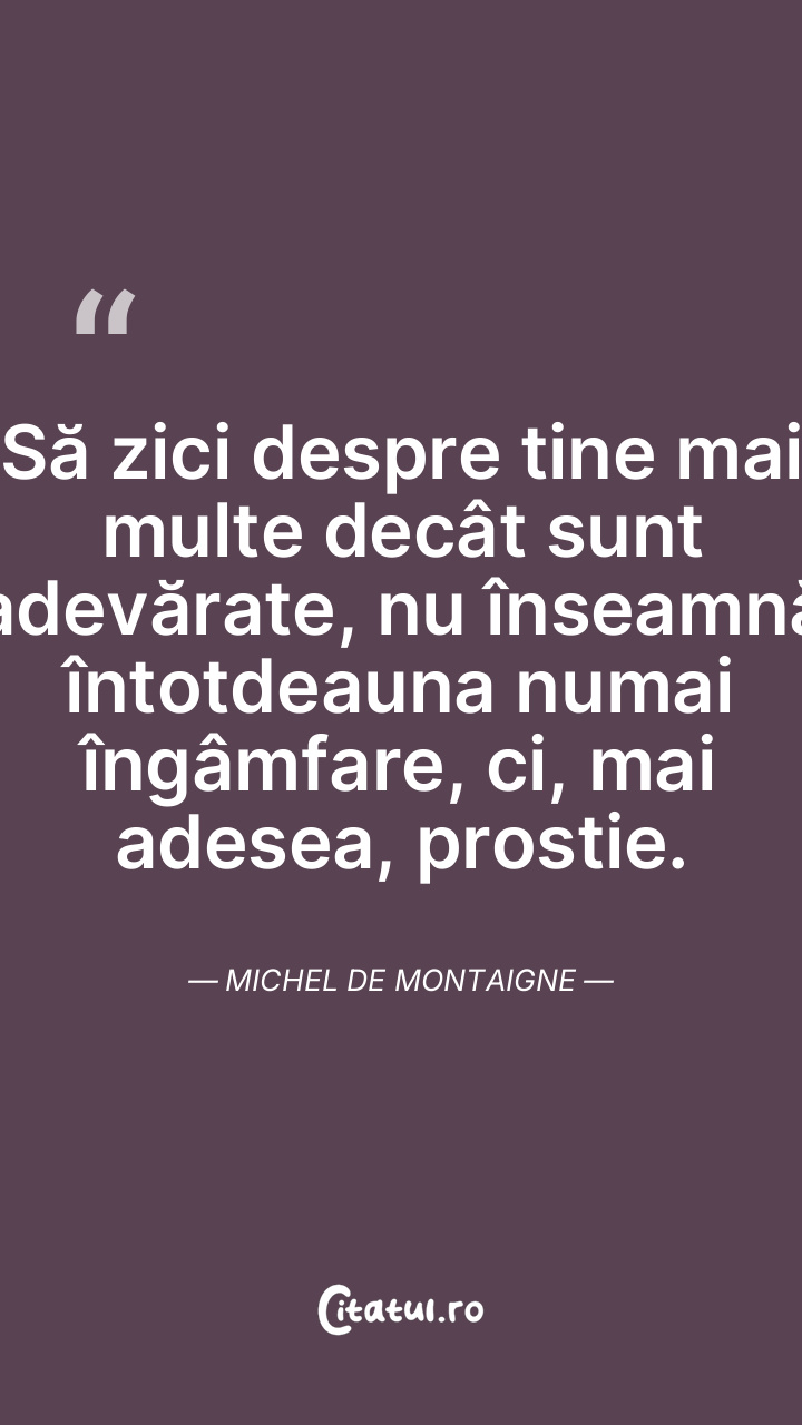 Dovedeşti o mare prostie să crezi în toate aparenţele dincolo de care nu poţi pătrunde. Michel de Montaigne