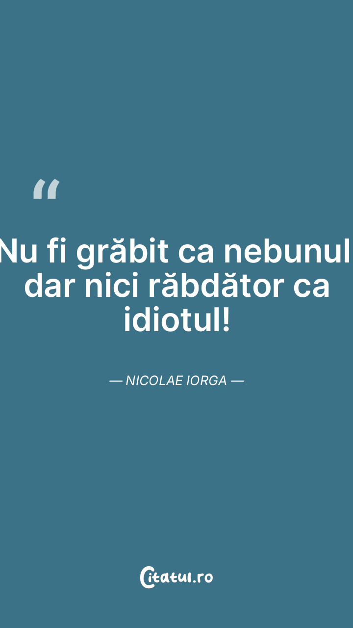 De multe ori o singură faptă formează un viteaz şi o singură prostie consacră un prost. Nicolae Iorga