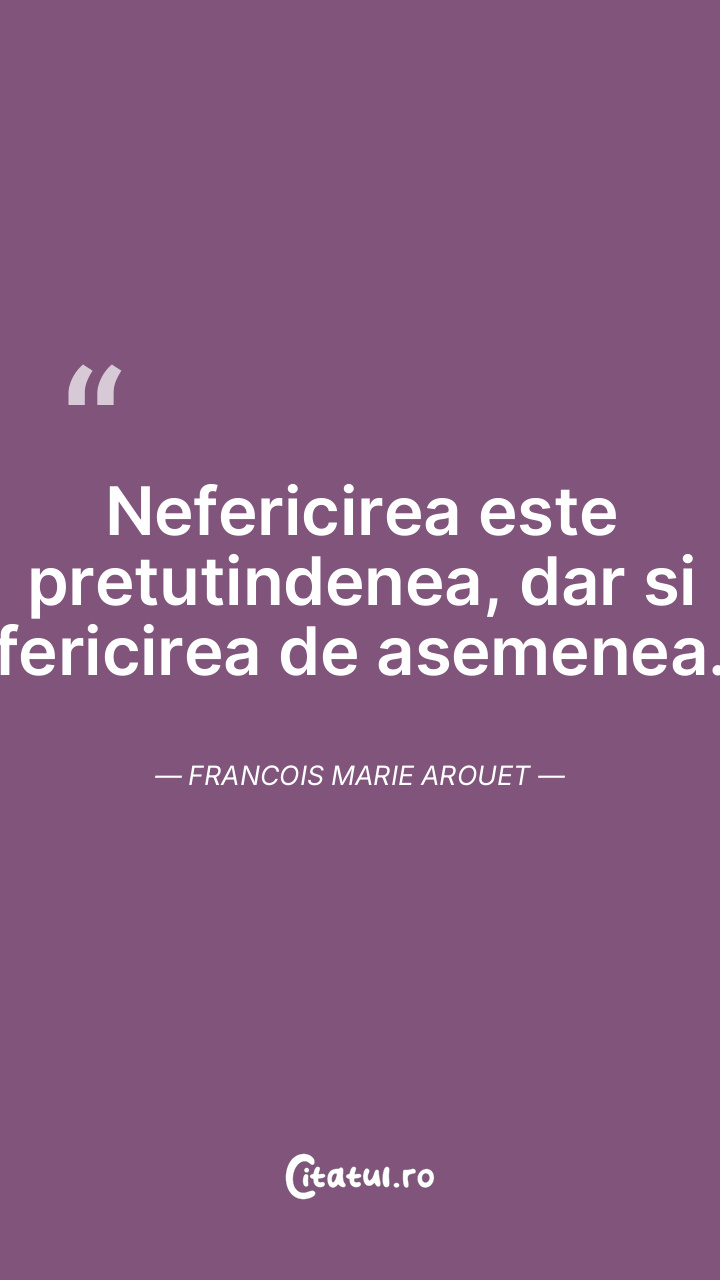 Nefericirea este pretutindenea, dar si fericirea de asemenea. Francois Marie Arouet