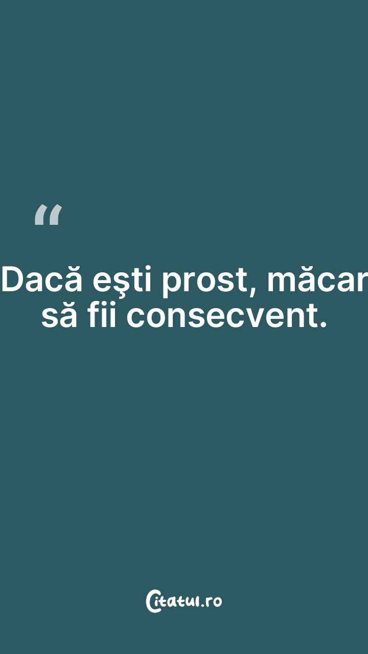 E greu să fii şi prost, darămite deştept. ... Categorie: citate viata Dificultate: Ușor de citit și înțeles Votează: ★ ★ ★ ★ ★ (0/5 din 0) Distribuiți acest citat? Alegeți platforma preferată: Salvează citatul in telefon/pc E greu să fii şi prost, darămite deştept. Copiază Favorite Eroare